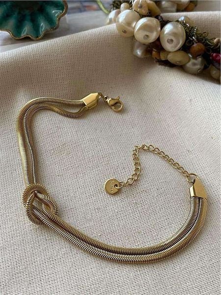 – materiał: stal szlachetna- powłoka: w kolorze złota- typ łańcuszka: jodełka- zapięcie: karabińczyk- regulacja długości: takWskazówka: Zdjęcie produktu w powiększeniu.