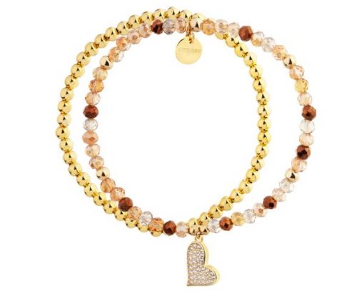 Bransoletka z mosiądzu pozłacana ze szklanymi detalami i cyrkoniami – serce – AR536-6078. Mosiądz pozłacany