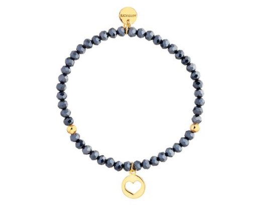 Bransoletka z mosiądzu pozłacana ze szklanymi detalami – serce