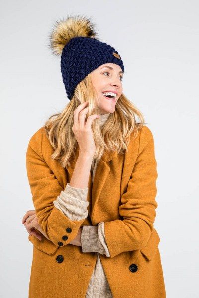 Ciepła granatowa czapka PaMaMi z polarowym podszyciem i futerkowym pomponem. Stylowa i wygodna, idealna na jesienne i zimowe dni.