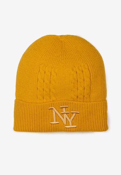 Żółta Czapka Beanie Ozdobiona Haftowanymi Literami Gogomi