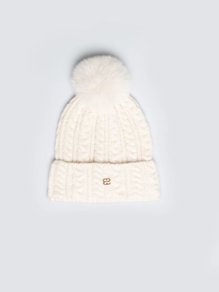Czapka damska z dekoracyjnym splotem z pomponem kremowa Carole 103