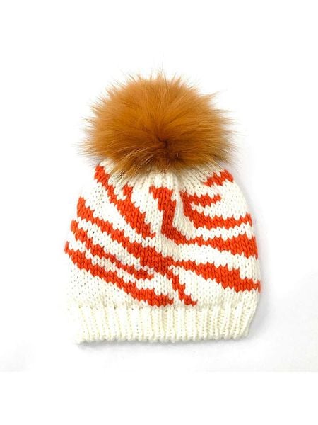 – z dodatkiem wełny- ogrzewający i przyjazny dla skóry materiał- właściwości termoregulacyjne- ściągacz: dolny brzeg- detale: tekstylny pompon- wzór: zebra