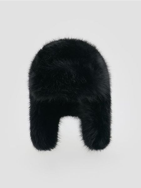 Czapka ze sztucznego futerka – czarny