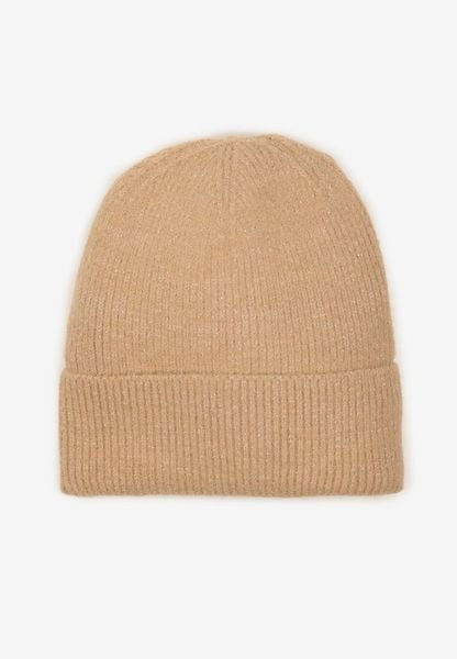 Ciemnobeżowa Czapka Ozdobiona Wywinięciem i Metaliczną Nicią Temirina