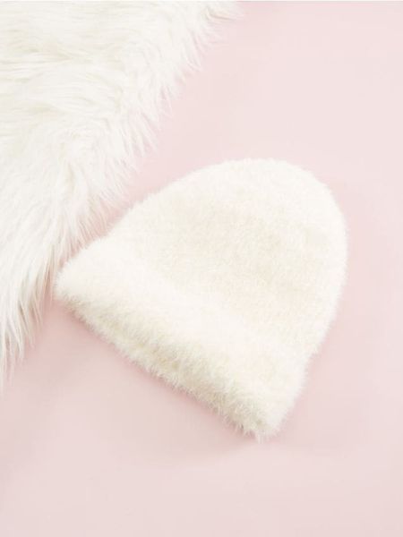 Sinsay – Czapka – kremowy – miękki, futrzany materiał,elastyczna gumka
