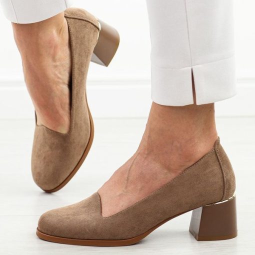 Khaki zamszowe półbuty damskie na obcasie Potocki 12545