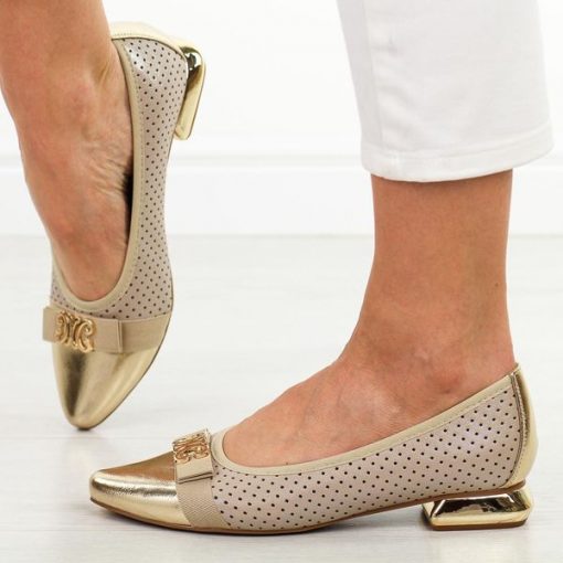 Beżowe ażurowe baleriny damskie Potocki 12556