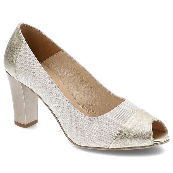 Czółenka damskie Gamis, ze skóry naturalnej i na słupku, złote, 1525