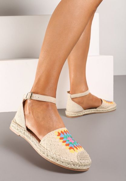 Beżowe Płaskie Espadryle Zapinane Wokół Kostki na Sprzączkę z Podeszwą z Juty Biovella