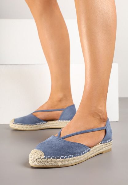 Ciemnoniebieskie Płaskie Espadryle z Wyciętymi Bokami Ozdobione Plecionką Annorila