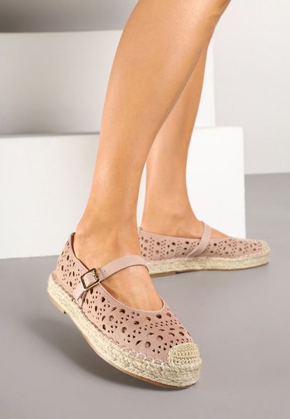 Różowe Płaskie Espadryle z Plecionką i Ażurową Cholewką Aralithra