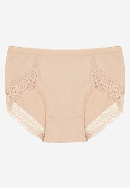 Beżowe Majtki Figi z Bawełny z Koronkową Lamówką Idilea