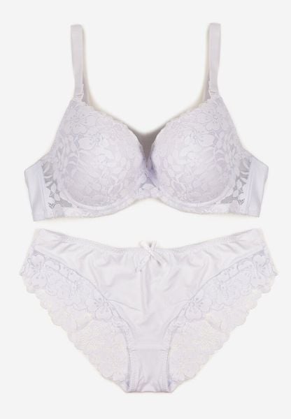 Biały Koronkowy Komplet Biustonosz i Majtki Figi w Klasycznym Stylu Ezirene