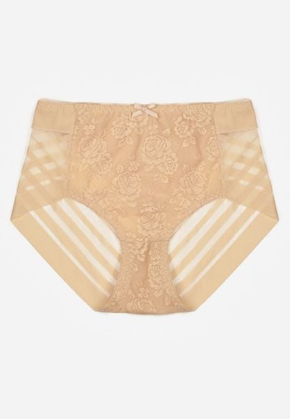 Linia: Plus size, Fason: Z wysoką talią, Wzór: Koronka, Sezon: Całoroczny, Kod produktu: 402534, Kolor: Beżowy