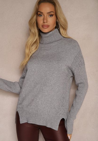 Szary Casualowy Golf z Bawełną i Wiskozą oraz Rozcięciami po Bokach Cialisea