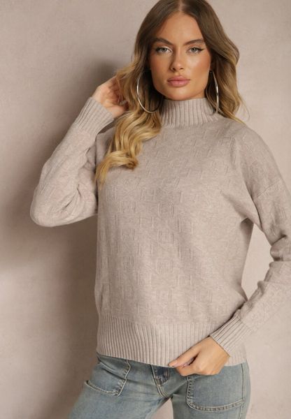 Beżowy Golf Sweter z Tłoczeniem i Ściągaczami Melovira