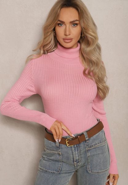 Ciemnoróżowy Klasyczny Golf Prążkowany Solrelia