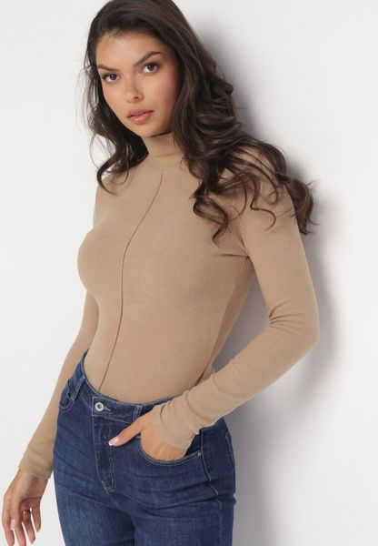 Beżowy Sweter Golf o Dopasowanym Kroju Ryler