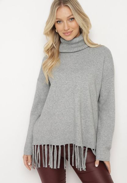 Szary Golf Ozdobiony Frędzlami Sartoria