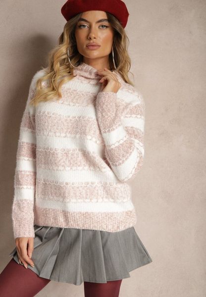 Ciemnoróżowy Golf z Wełną Ozdobiony Pasami Zinalith