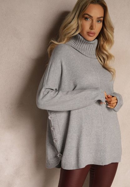 Szary Golf o Klasycznym Fasonie z Guzikami na Dole Atteoria