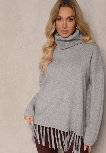 Szary Golf Wykończony z Przodu Frędzlami Gartoria
