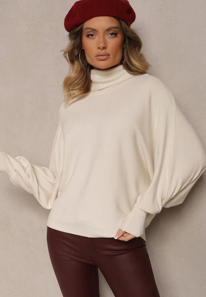Jasnobeżowy Golf z Wiskozą o Kroju Nietoperza Ozdobiony Ściągaczami Melleti