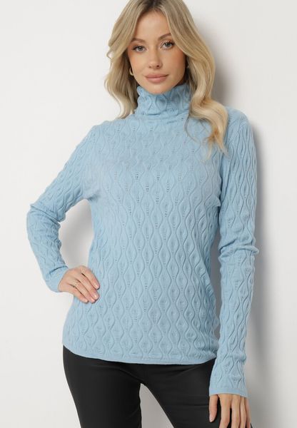 Jasnoniebieski Golf z Wiskozą Zdobiony Tłoczonym Wzorem i Metaliczną Nicią Ilamirael