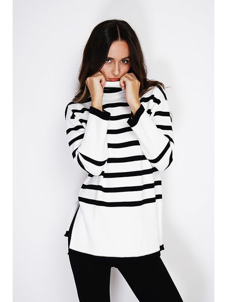 – z dodatkiem kaszmiru- kołnierz: golf- ściągacz: kołnierz, zakończenia rękawów, dolny brzeg- dolny brzeg: z rozcięciem- krój: luźny- wzór: paskiUwaga: Na metkach odzieży tej marki znajdują się rozmiary francuskie. Rozmiarówka została przez nas przeliczona. Podane do wyboru warianty rozmiarów odpowiadają standardowym europejskim rozmiarom konfekcji. Prosimy zapoznać się z zamieszczonym objaśnieniem rozmiarów.