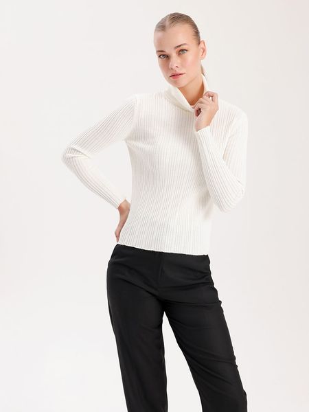 – z dodatkiem wełny- kołnierz: golf- krój: wąski- look: jednokolorowy, prążkowanyUwaga: Przy wyborze właściwego wariantu zaleca się korzystanie z tabeli rozmiarów.