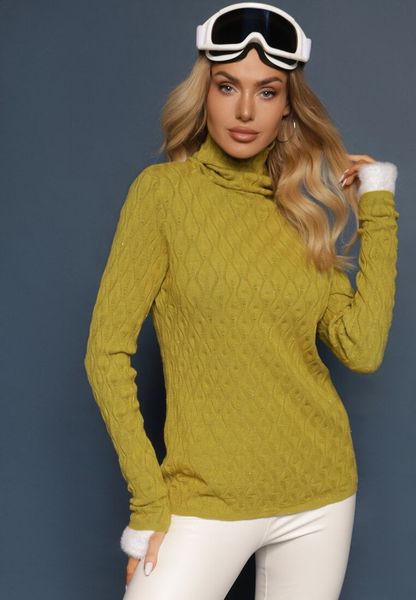Zielony Golf z Wiskozą w Tłoczony Wzór Przeszyty Metaliczną Nitką Neldora