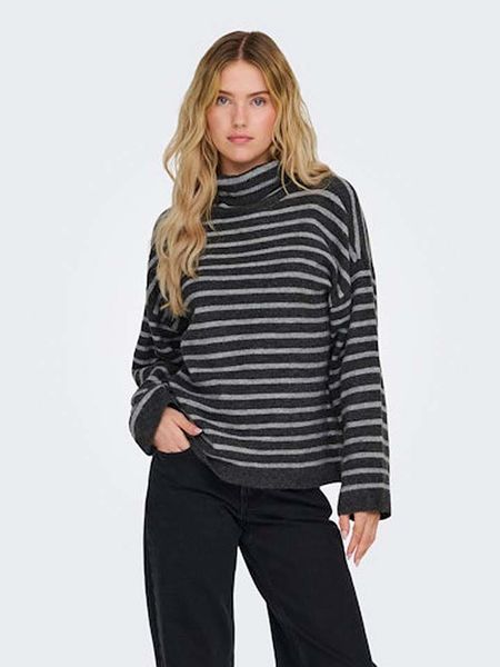 – kołnierz: golf- detale: nakładane rękawki- wzór splotu: ścisły- krój: prosty- wzór: paski