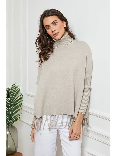 – kołnierz: golf- detale: frędzle- krój: luźny- look: jednokolorowy