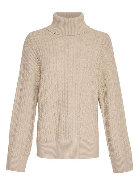 – kołnierz: golf- ściągacz: kołnierz, zakończenia rękawów, dolny brzeg- wzór splotu: warkocz- krój: prosty- look: jednokolorowy