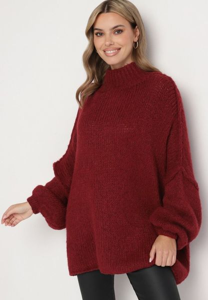 Bordowy Golf z Wełną o Kroju Oversize z Obniżoną Linią Ramion Lilenae