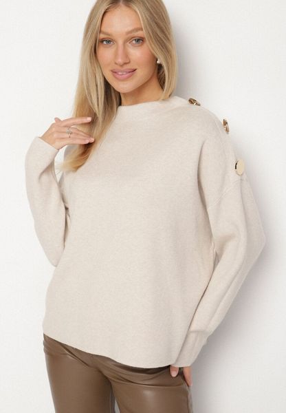 Jasnobeżowy Golf Ozdobiony Metalicznymi Guzikami Amentia