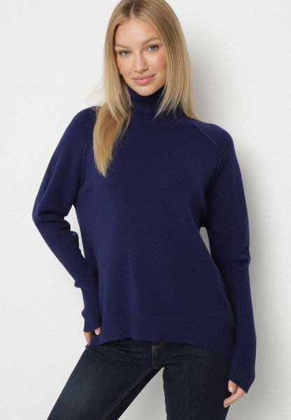Granatowy Klasyczny Golf z Dodatkiem Kaszmiru Zoirmosa