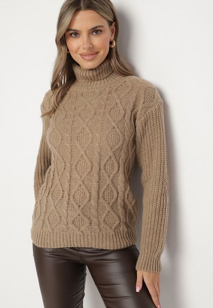 Ciemnobeżowy Golf z Wełną Tłoczeniem i Ściągaczem Miaraia
