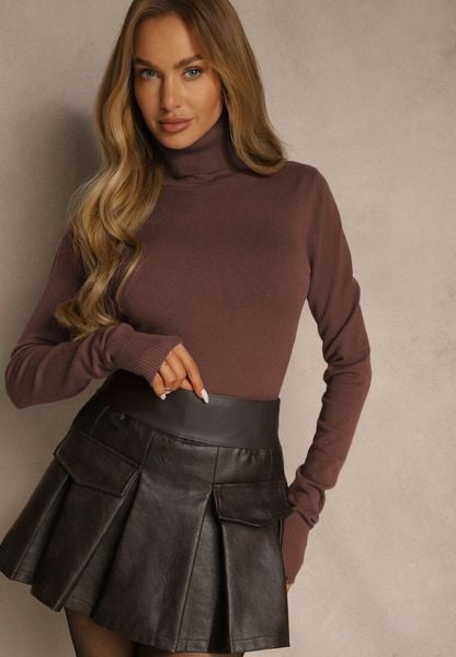 Brązowy Golf Sweterkowy z Domieszką Kaszmiru Zaivanna