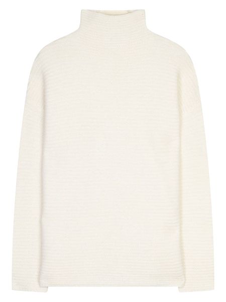 – czysty kaszmir (6-niciowy)- kołnierz: golf- look: jednokolorowy, prążkowany- krój: prosty