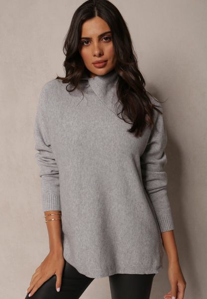 Szary Golf z Gładkiej Tkaniny ze Ściągaczami przy Rękawach Kamna