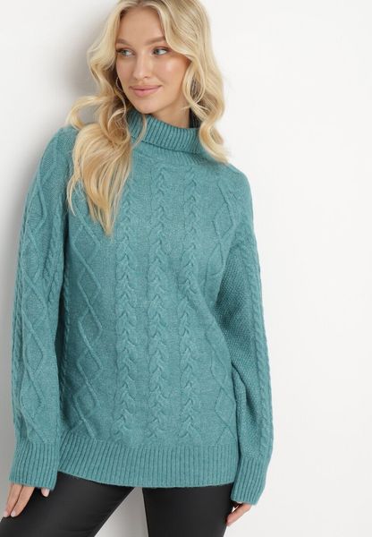 Ciemnozielony Luźny Golf w Warkoczykowy Splot Gordamia