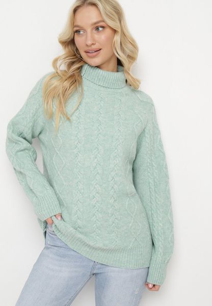 Jasnozielony Luźny Golf w Warkoczykowy Splot Gordama