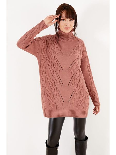 – z dodatkiem wełny- kołnierz: golf- krój rękawów: nietoperz- ściągacz: kołnierz, zakończenia rękawów, dolny brzeg- wzór splotu: warkocz- krój: oversized- look: jednokolorowyUwaga: Przy wyborze właściwego wariantu zaleca się korzystanie z tabeli rozmiarów.