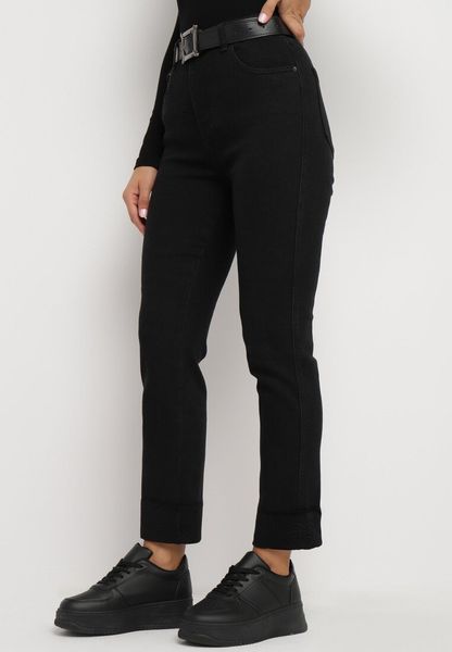 Czarne Klasyczne Jeansy z Wysokim Stanem Podwiniętymi Nogawkami i Paskiem z Klamrą Terinori