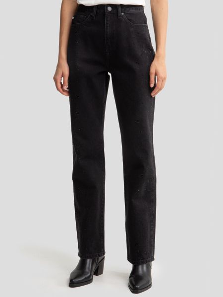 Jeansy damskie z prostą nogawką z cyrkoniami czarne Jade 925