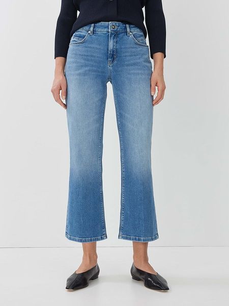 – wysokość pasa: high waist- fason: regular fit- krój nogawek: prosty- szlufki na pasek: tak- zapięcie: guzik i suwak- kieszenie: 5 klasycznych- naszywki: ze skóry syntetycznej- długość nogawki: 7/8- przetarcia: tak