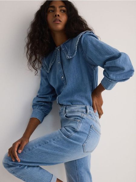 odzież damska reserved jeansy ze sklepu reserved jeansy reserved odzież damska reserved jeansy z podwyższonym stanem niebieskie jeansy