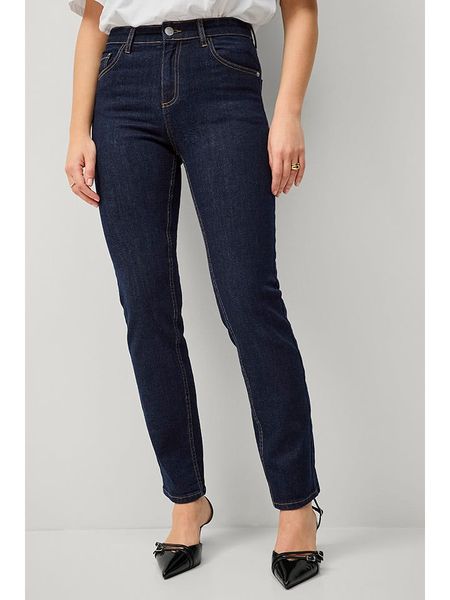 – wysokość pasa: regular waist- fason: slim fit- krój nogawek: prosty- zapięcie: guzik i suwak- kieszenie: 5
